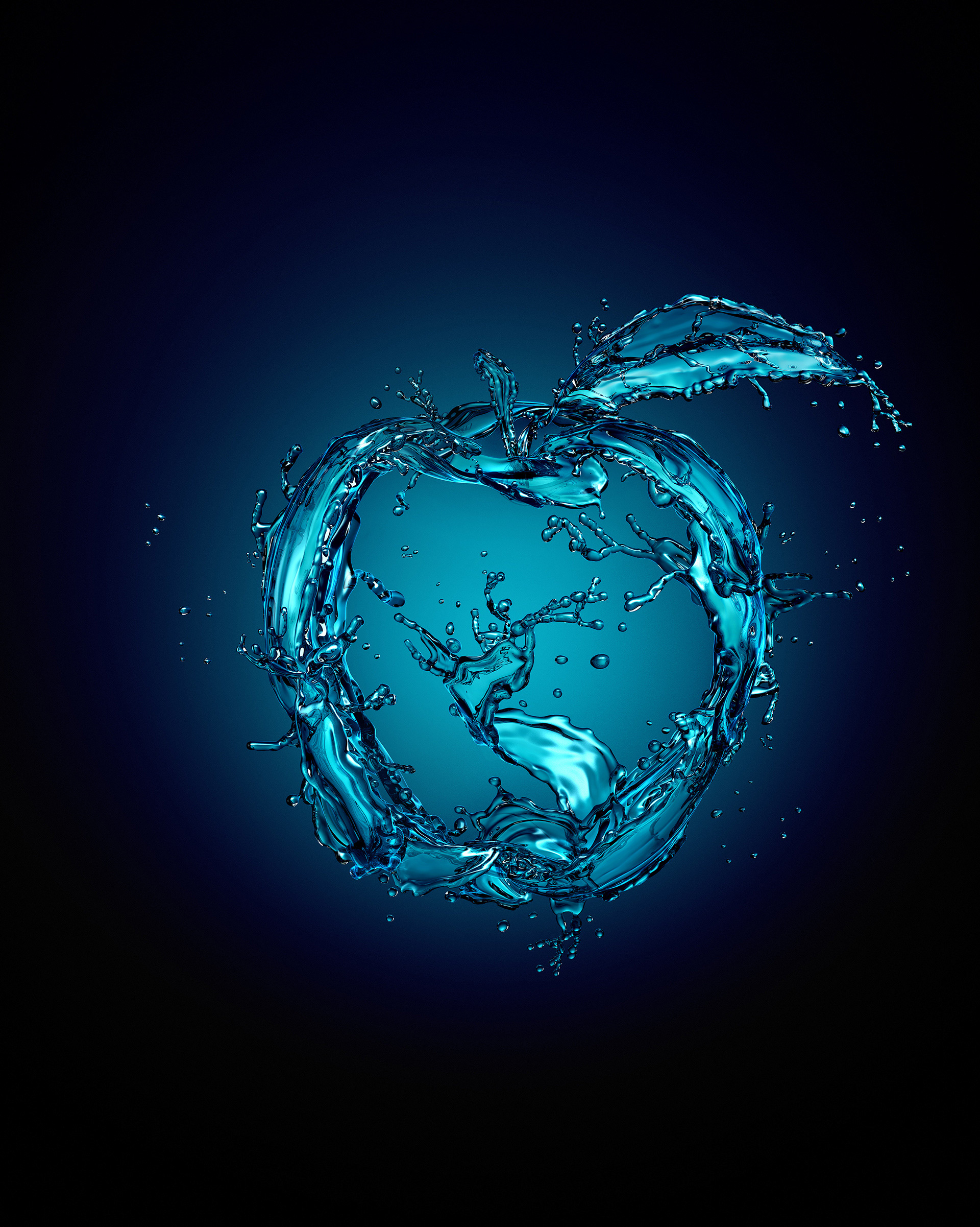 Full 3D print. Integral 3D generation of apple and pear splashes. Rendering, compositing and retouching.